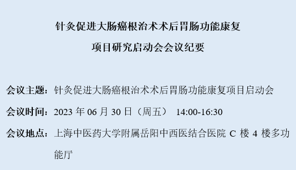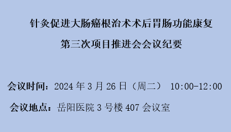 建立具有针刺特色的大肠癌加速术后康复方案并推广应用